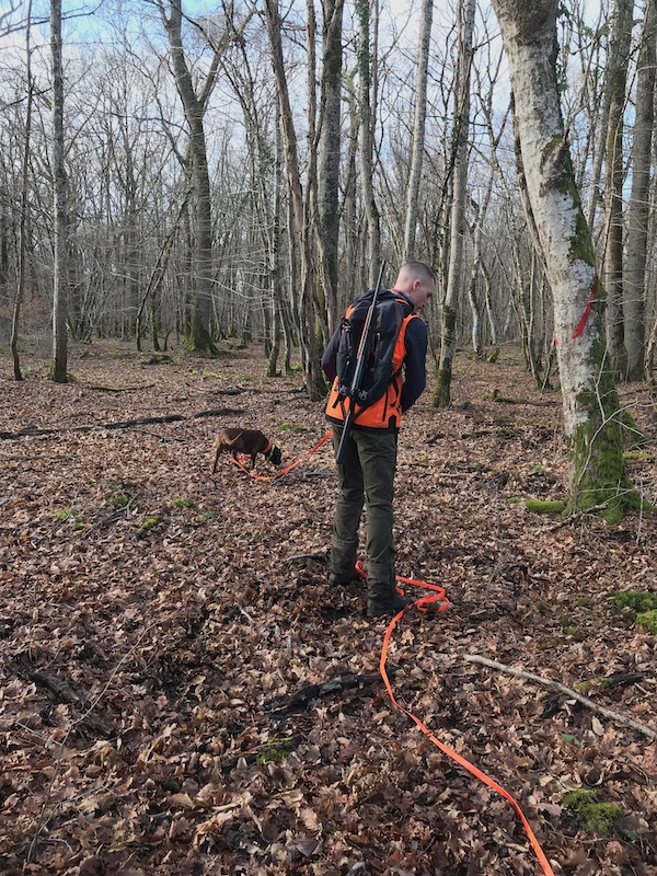Malheureusement il avait été tiré en limite de territoire et rentrait chez des voisins qui chassaient ce matin là, mais qui avaient proposé de nous informer s’ils le retrouvaient et a minima de nous prévenir quand ils auraient fini de chasser afin que nous puissions entamer la recherche.